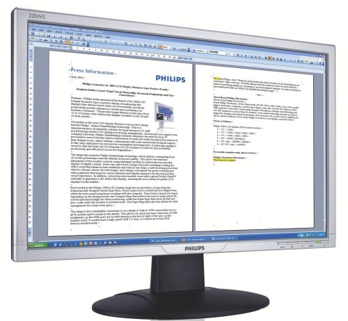 Niedrigerer Preis Philips 220WS8 22 Zoll Widescreen TFT LCD-Monitor DVI (Kontrast, 1000:1, 5ms Reaktionszeit) silber